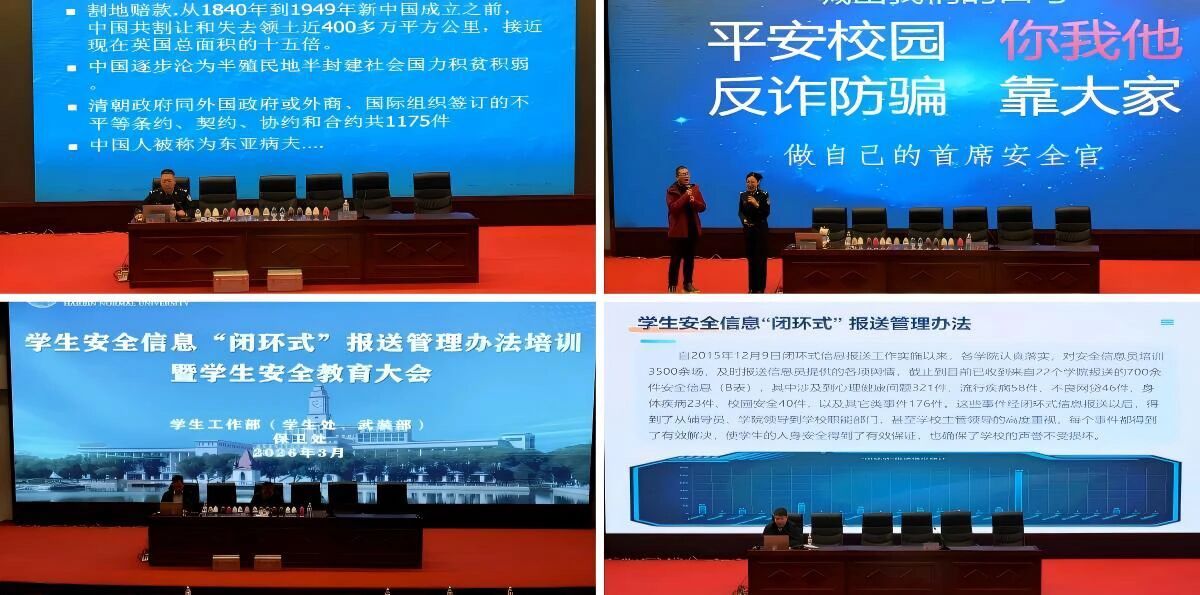 此次大会主题鲜明、内涵丰富,既是警校联动深化合作的务实举措,更是一堂生动的法治实践课。通过公安干警的专业解读与学校相关部门的周密部署,我校学生的法治意识与风险防范能力得到显著增强。学校将持续深化警校共建机制,着力构建全方位、多层次、立体化的安全教育体系,全力筑牢平安校园的坚实屏障,为落实立德树人根本任务提供坚强的安全保障。