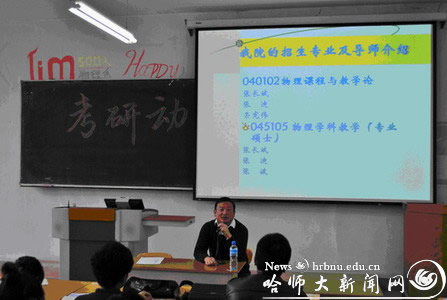 为帮助08、09级准备考研的同学激发热情、点燃斗志,物理与电子工程学院于3月23日在理化楼113室召开了考研动员大会。学院院长张喜田出席了大会,本次大会由学院副院长孙文军主讲。