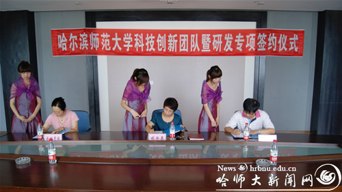 仪式中宣布了首批入选“科技创新团队暨研发专项”培养对象名单。入选“科技创新团队”培养对象的共有3个团队,入选“研发专项”培养对象的有1个项目,臧淑英代表学校与相关人员签约。