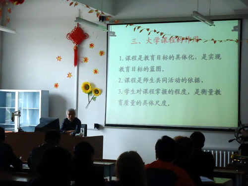 计教授对大学课程理论和课程目标做了精辟而细致的阐述,要求每一名教师要掌握大学课程的核心理论,探求出适合自己的教学模式开展教学工作,在教学内容、教学手段、教学方法、教学管理等方面要求中青年教师要大胆创新。他特别强调教师要认清自己在教书育人过程中的重要角色,既要准确传授专业知识,又要起到做人为师的典范。