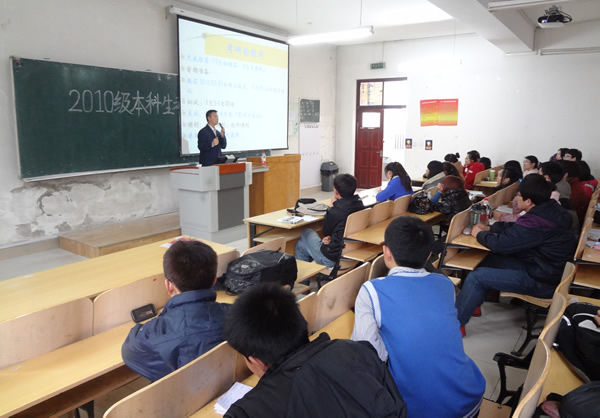 讲座中,孙文军就考研形式、考研过程以及学院考研和保研的具体事项做了详细介绍。他结合自己多年的经验,为同学们仔细分析了考研初试以及复试流程,希望同学们以平常心对待。对本学院的研究生培养,孙文军为同学们介绍了招生目录以及各专业导师情况,并且就保研步骤与方式进行了详尽说明,鼓励2010级本科同学努力学习,成为本学院的研究生,继续深造。