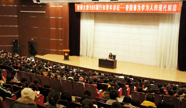 11月29日晚,社会与历史学院副院长隋丽娟老师作客我校第105期行知青年讲坛,讲授《曾国藩为学为人的现代解读》。本次活动采取免费赠票的形式,科学会堂二楼座无虚席。
