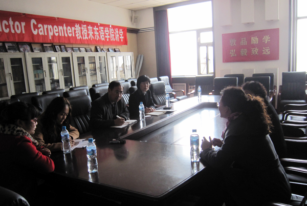 4月15日,吉林师范大学博达学院东语学院院长杨慧一行来我校东语学院学习交流。东语学院党政领导以及阿拉伯语系负责老师参加了座谈会。