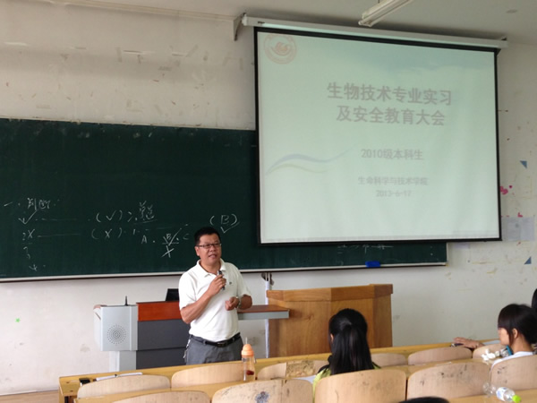 6月17日,生命科学与技术学院在理工三号楼320教室召开了2010级生物技术专业实习动员及安全教育大会,学院院长于丽杰、党委书记马树岩、带队教师及全体实习生参加了这次大会。