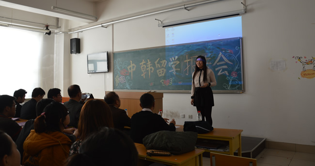近日,东语学院在社科楼613室举办了韩国留学报告会。东语学院党政领导、国际合作与交流处有关老师、光大银行黑龙江分行代表及部分韩语系学生参加了本次报告会。