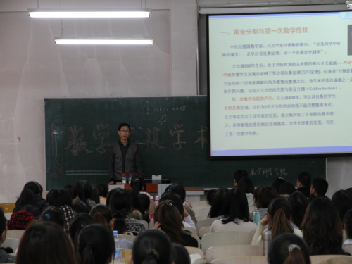 么焕民教授以生动幽默的语言将严谨精细的数学知识变得通俗易懂妙趣横生,向广大师生介绍了历史上的三次数学危机以及数学模型教学与数学建模竞赛试题解析。本次学术报告会,使同学们进一步了解了数学建模是用数学的符号和语言把实际问题表述为数学算式,用来解决现实生产、生活中的问题。在经济全球化迅猛发展的今天,数学理论与方法已经成为当代高科技的一个重要组成部分和思想宝库,数学已经成为一种能够普遍实施的技术。