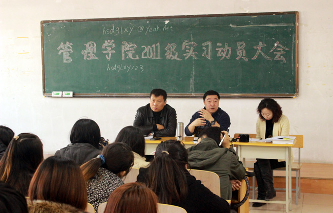 (李新野/文)为做好学院毕业生就业、实习工作,11月10日上午,管理学院在社科楼701室举行实习动员大会,学院领导等部分老师出席了此次动员会,管理学院2011级学生参加了此次活动。