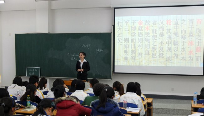 在一个月的紧张比赛中,选手们积极准备,教师细心指导,经过班级海选、初赛和学院决赛等层层选拔,最终33名优秀选手进入决赛。决赛从教师口语、教态、授课内容设计、重难点把握、教法学法、多媒体使用等方面对选手进行综合考核。各参赛学生讲课材料准备充分,课堂教学目的明确,教学思路清晰,教学过程设计合理,语言表达准确精炼,教学方法独特新颖。选手流畅的讲解,优美的板书,端庄大方、挥洒自如的仪态,展现了过强的教学技能和教师风采。