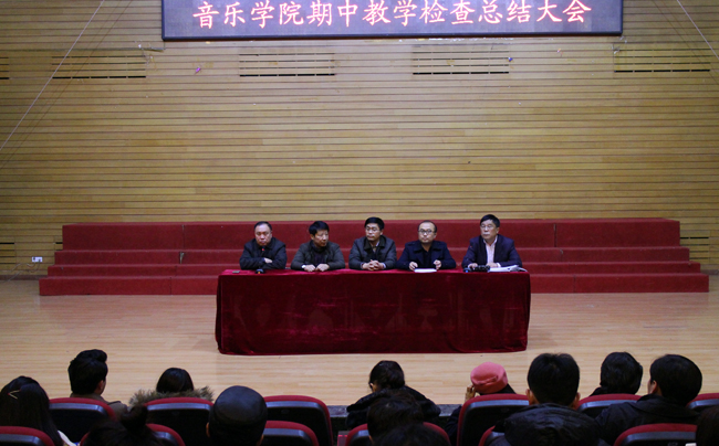 (关迪/文)11月18日,音乐学院在音乐厅召开了期中教学检查总结大会,学院党委书记王彬,党委副书记乔永刚,副院长王立和、王宏宇、孙鹏出席大会,全院教师参加了大会。大会由王立和主持。