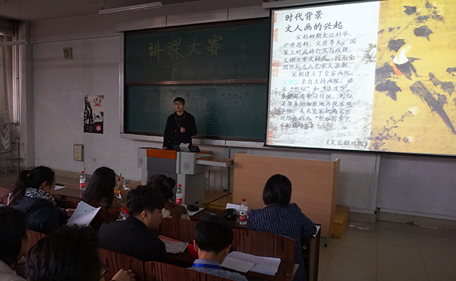 (崇明宇/文)3月30日,美术学院举办第七届“讲课大赛”决赛。经过两次预赛角逐,来自美术教育系的四个年级共10名同学进入本次第七届“讲课大赛”决赛。学院职业生涯协会承办了本次活动。