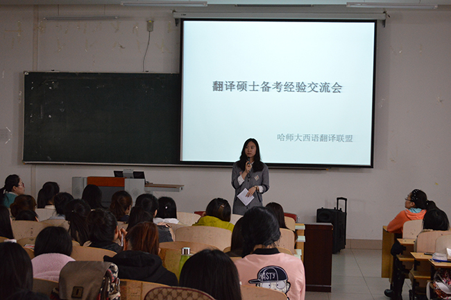 (仲微微/文)为全面推进西语学院以文化人、以德育人理念,深化学院学风建设,营造考研氛围,为备考学生提供考研信息与经验,4月13日,西语学院翻译联盟邀请了考取北京第二外国语大学翻译硕士专业的宁爽、北京师范大学翻译硕士专业的王婧、西安外国语学院翻译硕士专业的罗川、广东外语外贸大学翻译硕士专业的何宇婷4名同学在西语楼503教室与大家共同分享翻译硕士的备考经验。学院党委书记姜玉洪、党委副书记张玉山,西语学院翻译联盟负责教师以及2013级备考研究生的同学参加了本次经验交流会。