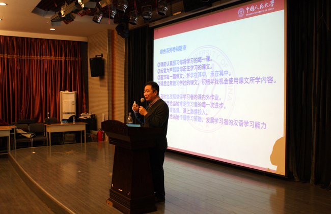 报告中,李泉教授结合自己在美国、德国、法国、英国、西班牙、智利、阿根廷、南非、越南、瑞士、墨西哥、匈牙利等国家任教或短期讲学的经历,以及自己从事汉语国际教育近30年经验,对汉语课堂教学信念进行了深入剖析,指出它在教学中有着重要的作用,是教师知识体系中的核心知识,它决定着教师专业发展的取向。他指出,在核心信念与教师专业发展问题上,学生语言能力的培养是根本目标,高密度、高质量的教学互动是基本方式,注重汉语汉字特点是主要内容。同时,他对核心知识发展取向、核心能力发展取向、核心素养发展取向进行了例示。李泉教授平易近人,语言诙谐幽默,给国际汉语教师们提供了崭新的视角,此次报告对提升学院教师的教学科研水平和研究生的学术能力必将产生积极的影响。