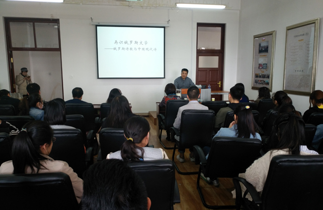 汪剑钊教授是著名诗人、翻译家、评论家,北京外国语大学教授,比较文学与世界文学专业博士生导师,此次应斯拉夫语学院邀请,以《俄罗斯诗歌与中国现代诗》为题,为我校师生作了一场充满学术性和趣味性的报告。汪剑钊教授介绍了我国对俄罗斯诗歌译介和研究的总体情况,指出了不同时期诗歌译介和研究的特点,以大量实例对比和阐释了俄罗斯诗歌对中国诗歌的影响,分析了中国诗歌“豪放派”和“婉约派”与不同风格的俄罗斯诗歌的对应关系。