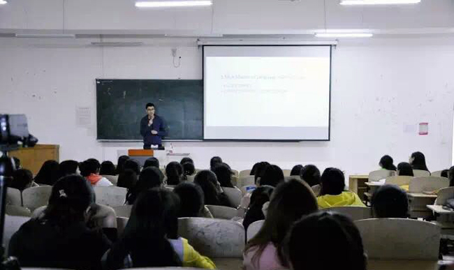 高金华在2014年考入北京大学外国语学院MTI翻译专业硕士,2017年他回到母校,和同学们分享了两年来在北大的求学经验与个人感受。报告会上,他讲解了北大MTI授课无教材的、多样的上课形式的特点,以及其生源的多元化。并详细介绍了关于实习方式、实习单位的挑选和怎样在期限时间内很好地完成实习任务,这当中,考核方式的讲解更是为同学们增加了经验、减少了压力。同时,他还就学位论文撰写方式以及就业与深造的资讯进行了详细的介绍,他倡导同学们要有更高的视野和更深层次的学习体验。