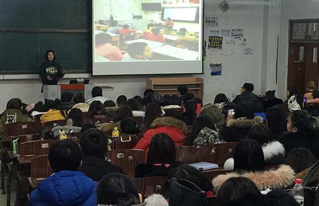 音乐学院2015级金东旭、周芷伊、王昱涵、彭铎、邹思涵、邹月、张瑞宁、王慧美、孙懿洺等9名音教系学生和姜惠书1名戏剧表演专业学生参加了支教活动。会上,主持人金东旭为同学们介绍了有关我校同哈尔滨师范附属小学联合举办的“三点半公益课堂”活动的缘由与具体实施情况。随后,各位支教学生先后向同学们分享了自己在“三点半公益课堂”活动中获得的经验和感受。