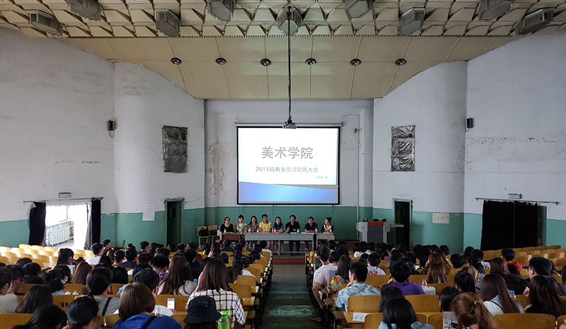 (崇明宇/文)7月6日上午,美术学院在江南校区物理楼810教室召开学院2015级学生教育实习动员大会。学院副院长张红松、辅导员、带队教师及2015级全体同学参加了此次会议。胡晓婷老师主持会议。