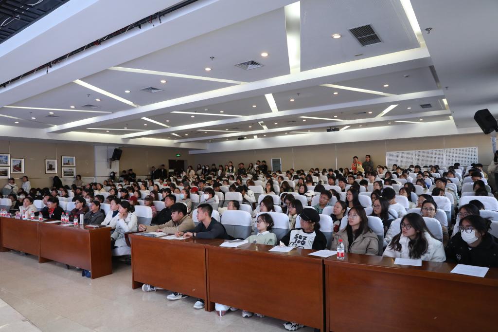 为进一步扎实开展“工作落实年”活动,助力我校学生备考即将到来的全国大学英语四、六级考试,11月1日下午,学校教务处联合西语学院在梦溪报告厅举办了第二场全国大学英语四、六级备考方略系列讲座。主讲嘉宾为西语学院副教授丁玲玲。相关部门领导、教师及来自我校各学院的近400多名学生参加了本次讲座。