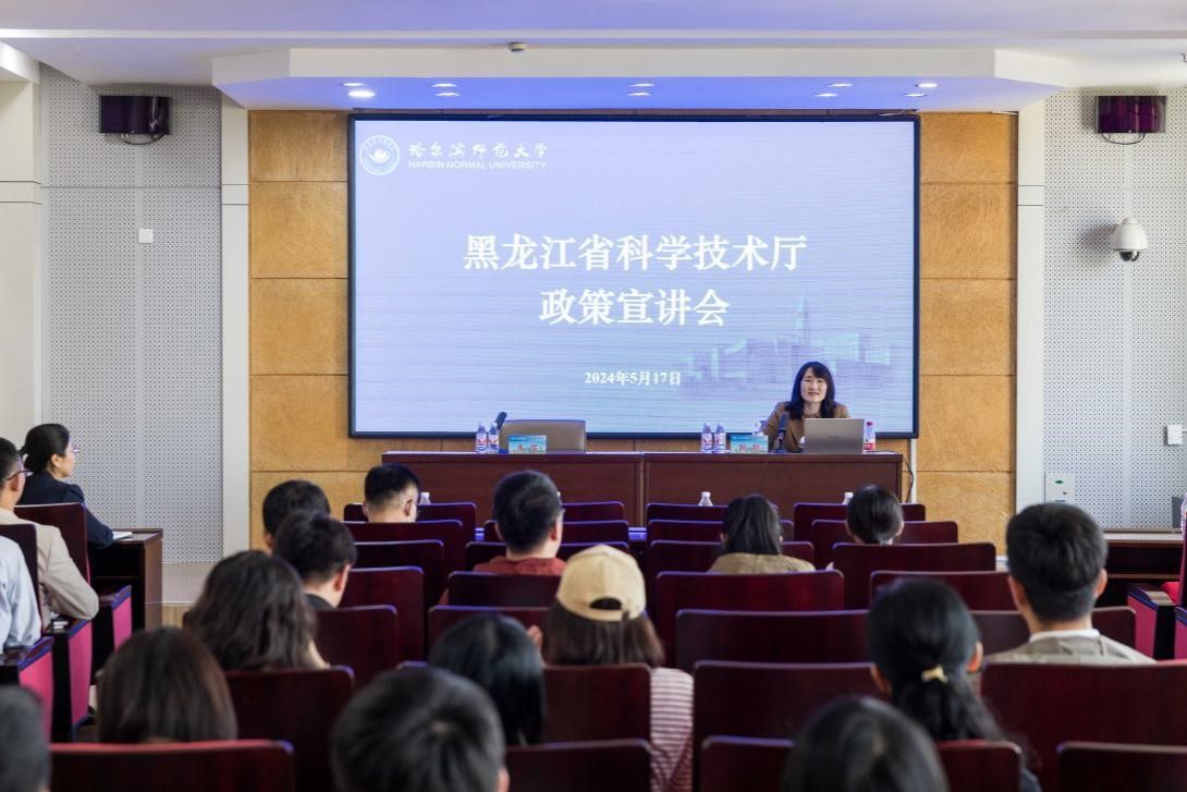 (程敏/文)为帮助我校教师更好地理解与掌握黑龙江省相关科技政策,进一步推动我校科技工作落实落细,黑龙江省科技厅政策宣讲会于5月17日下午在行知楼746会议室举行。黑龙江省科技厅机关党委专职副书记邹颖出席会议并做专题报告,各学院科研院长、教师代表、科研处相关人员参加会议。会议由科研处处长李苗主持。