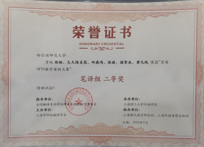 自2024年2月26日赛事启动以来,全国近80所高校积极参与此次全国MTI教学案例大赛。我校东语学院教师团队表现优异,荣获4项奖项。其中,由郑杨教授带领的教学团队在笔译组中获得二等奖,蔡雨副教授、王佳梦副教授带领的教学团队,以及日语教师车金善老师的团队,均在笔译组中获得三等奖。这些奖项充分展现了东语学院教师在翻译教学领域的深厚积淀与教学成果。