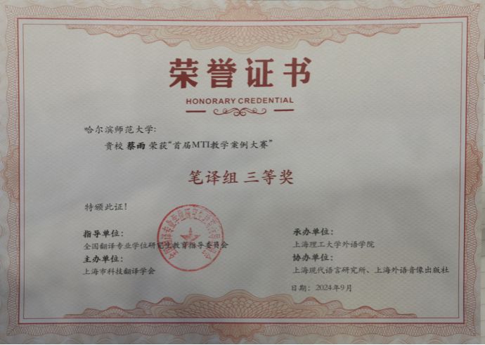 (蔡雨/文)2024年9月15日,2024·MTI案例教学研讨会暨“首届MTI教学案例大赛”颁奖典礼在上海外国语大学虹口校区隆重举行。此次会议旨在贯彻落实全国教育大会和全国研究生教育会议精神,推进MTI教学的多样化和兼容性建设,进一步提升翻译专业硕士教育的教学质量。此次大会由全国翻译专业学位研究生教育指导委员会指导,上海市科技翻译学会与《外语电化教学》编辑部主办,上海外语音像出版社承办,上海理工大学外语学院和上海现代语言研究所协办。