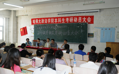 6月13日,政法学院在社科楼601室召开了2009级本科生考研暨司法考试动员大会。政法学院党政领导、2008级学生代表、2009级全体学生、2010级部分学生参加了大会。大会由学院党委副书记李斌主持。