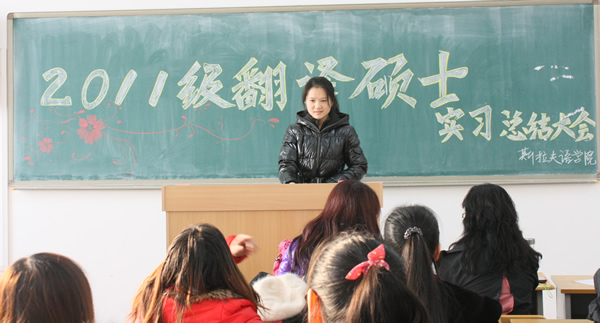 在实习总结大会上,斯拉夫语学院2011级7名翻译硕士研究生分别作了实习汇报,参加会议的老师和学生分别就感兴趣的问题向实习生提出问题,所含内容涉及到了实习过程、实习效果、实习与就业、自主创业等各个方面。主管研究生工作的副院长、博士生导师赵晓彬教授对本次实习工作做了全面总结,并就未来2012级同学实习工作提出要求。最后,学院院长、博士生导师赵秋野教授就俄语专业硕士的教学、管理、实习及就业等问题做了讲话,肯定了同学们在实习中取得的成绩并提出了希望。本次实习总结大会最终一致推选出本年度的优秀实习生。