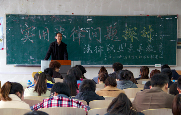 4月10日,政法学院于社科楼601室举办了实用法律问题知识讲座。讲座邀请呼兰区法学会秘书长郝建仁为法学专业2010、2011级的同学们进行法律知识普及。