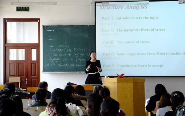 为切实提高教师课堂教学质量,加快我校大学英语教学改革的步伐,选拔推荐优秀青年教师代表我校参加即将举办的黑龙江省大学英语青年教师教学基本功大赛,公共英语教研部于4月17日下午在西语楼403室举办了第三届教师课堂教学大奖赛。公共英语教研部领导、全体教师以及校教学督导隋慧丽教授出席了本次大赛。