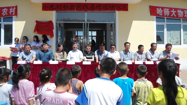 17日,乌吉密乡小九村社会实践基地授牌仪式举行。张立君代表志愿服务团队发表讲话,张喜田为实践基地授牌,乌吉密乡乡长田兆林代表实践基地和受助的乡民致谢。同时,学院领导为小九村小学捐赠文体用品,并于会后深入当地乡村进行实地考察。