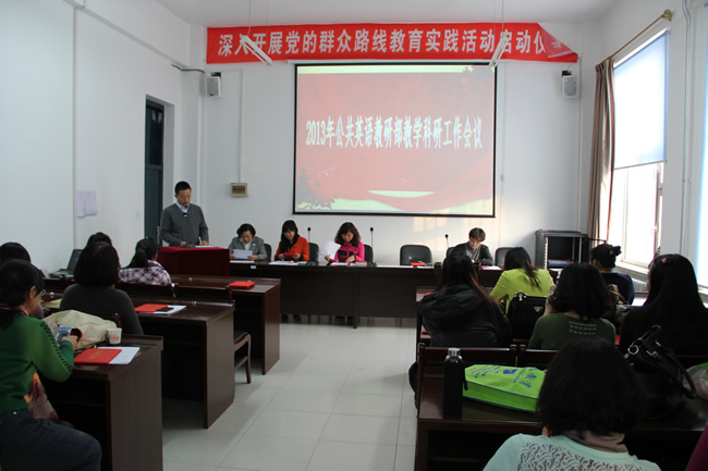 12月18日下午,“公共英语教研部2013年教学科研工作会议”在西语楼公共英语教研部会议室举行,公共英语部领导班子及全体教师参加会议,会议由副主任王瑛琦主持。