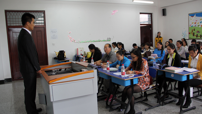 本次活动从6月份开始,学院制定了详细的考核方案,考核情景设置为作为一名应届师范毕业生,去求职的时候向评委展示自己。内容包括你的基本信息、成长经历、社会实践、学习成绩、兴趣爱好、人生规划、座右铭并写在黑板上,为什么选择做一名教师、如何当一名合格的教师等内容。时间限定为4分钟,要求脱稿,并在仪容仪表、语言表达、板书展示、内容表述、仪态表现等方面做了明确、详细且严格的要求。