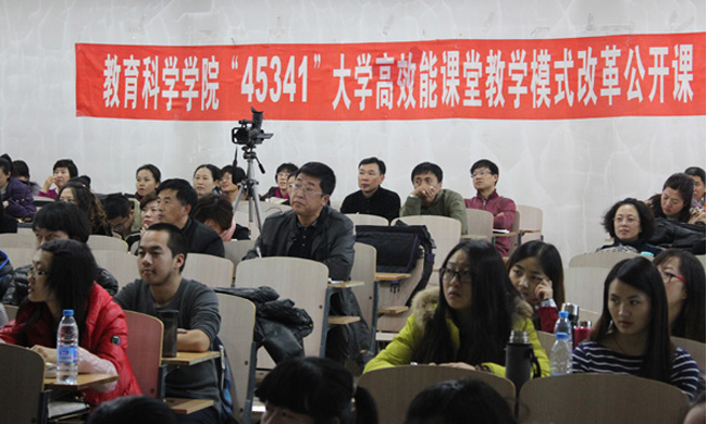 (林善城/文)为加强教学改革,进一步提高教育教学质量,12月17日下午,教育科学学院在社科楼252教室举行了“45341”高效能大学教学模式公开课活动。全院教师和相关专业的学生参加了本次公开课活动。