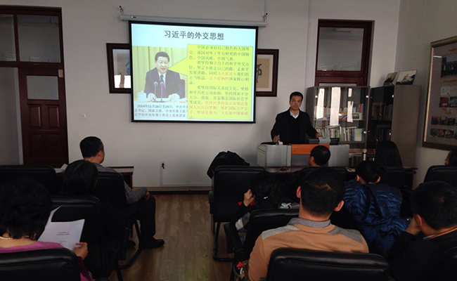 11月11日下午,斯拉夫语学院邀请中国社科院博士、我校政治与行政学院政治系主任陈宪良教授在社科楼903室举办了以“解读习近平外交思想”为主题的讲座。学院全体教职工参加会议。
