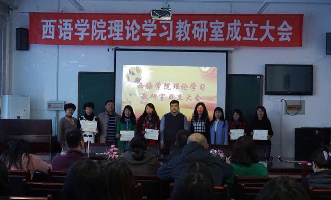 (仲微微/文)为贯彻落实《的通知》(哈师大党发〔2012〕169号)和《中共哈尔滨师范大学委员会关于加强基层党组织建设的意见》(哈师大党发〔2015〕19号)精神,强化党员政治素养,推动基层支部建设,形成基层党员理论学习和培养的长效机制,深入推进“两学一做”理论学习与实践活动扎实开展,西语学院结合我校“112349”工作模式实施方案的相关举措以及学院各教工、学生党支部的特点与优势,组织开展了深化“两学一做”系列活动,并于10月26日召开了党员“课程化”理论学习教研室成立大会。学院党政领导班子、教师及学生支部党员同志参加了会议。