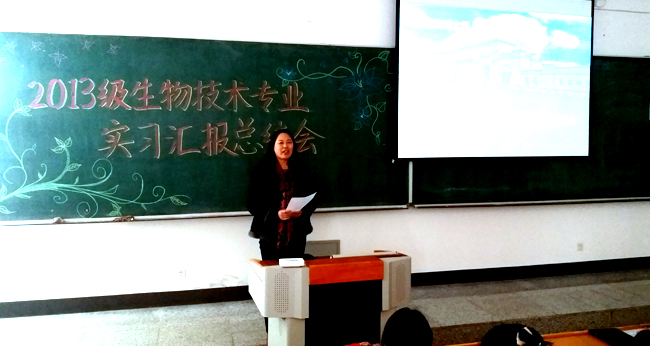 (张延明/文)11月17日上午,生命科学与技术学院在崇师楼召开了2013级生物技术专业实习总结汇报会。会议由2013级实习生张娇娇主持。学院院长于丽杰,党委书记于占福,党委副书记高阳,副院长郭东林,实习带队教师、辅导员及2013级生物技术专业全体同学参加了本次大会。