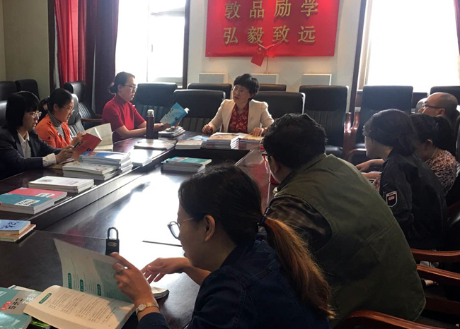 会上讨论气氛极其热烈。其中,刘正伟老师在针对不同教材研究的基础上,根据各个出版社及内容的特点对比进行了发言。曾凡君老师针对精读教材的特点,对精读教材的选择发表了自己的实践经验。
