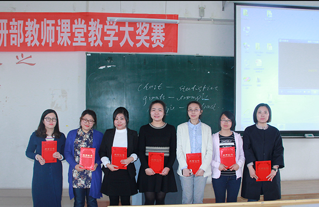 公共英语部“教师课堂教学大奖赛”既是对教师常规教学的检验,也为教师提供了学习观摩和课堂教学展示的平台。每次大赛都会有教师脱颖而出,并被选送参加省级以上教学赛事,取得了喜人的成绩。公共英语教研部“教师课堂教学大奖赛”使广大教师深受鼓舞,为我校大学英语教学质量的进一步提高起到了积极的推动作用。