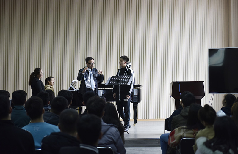 (李耀东/文)应音乐学院邀请,3月26日,意大利帕维亚音乐学院(Conservatorio di Pavia)声乐教授Roberto De Biasio来到我校音乐学院讲授声乐大师课。学院声乐教师和美声专业的学生听取了大师课。