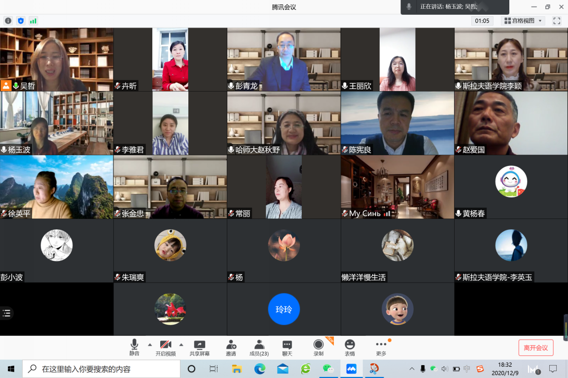 (黄杨春/文)根据学校相关工作要求,结合学院工作部署和计划,12月9日晚,斯拉夫语学院利用腾讯会议平台在线上举办了2021年度国家社科项目申报论证会。会议邀请国家社科基金重大项目首席专家、上海交通大学博士生导师彭青龙教授、苏州大学俄语语言文学博士点学科带头人赵爱国教授、东北农业大学博士生导师、2020年国家社科基金重大项目获得者武卉昕教授作为校外论证专家,并邀请马克思主义学院博士生导师陈宪良教授及本学院具有国家社科项目主持经验的5位老师作为校内论证专家与会。会议由副院长吴哲教授主持、学院全体专任教师出席会议。