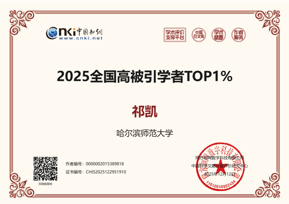 近日,中国科学文献计量评价研究中心依托中国知网收录的学术成果,遴选在各自领域内具有显著学术影响力和高引用率的学者,发布了“2025全国高被引学者”名单,经济与管理学院副院长、硕士生导师祁凯教授和工商管理系系主任、硕士生导师张宝生教授入选“2025全国高被引学者Top1%”行列。