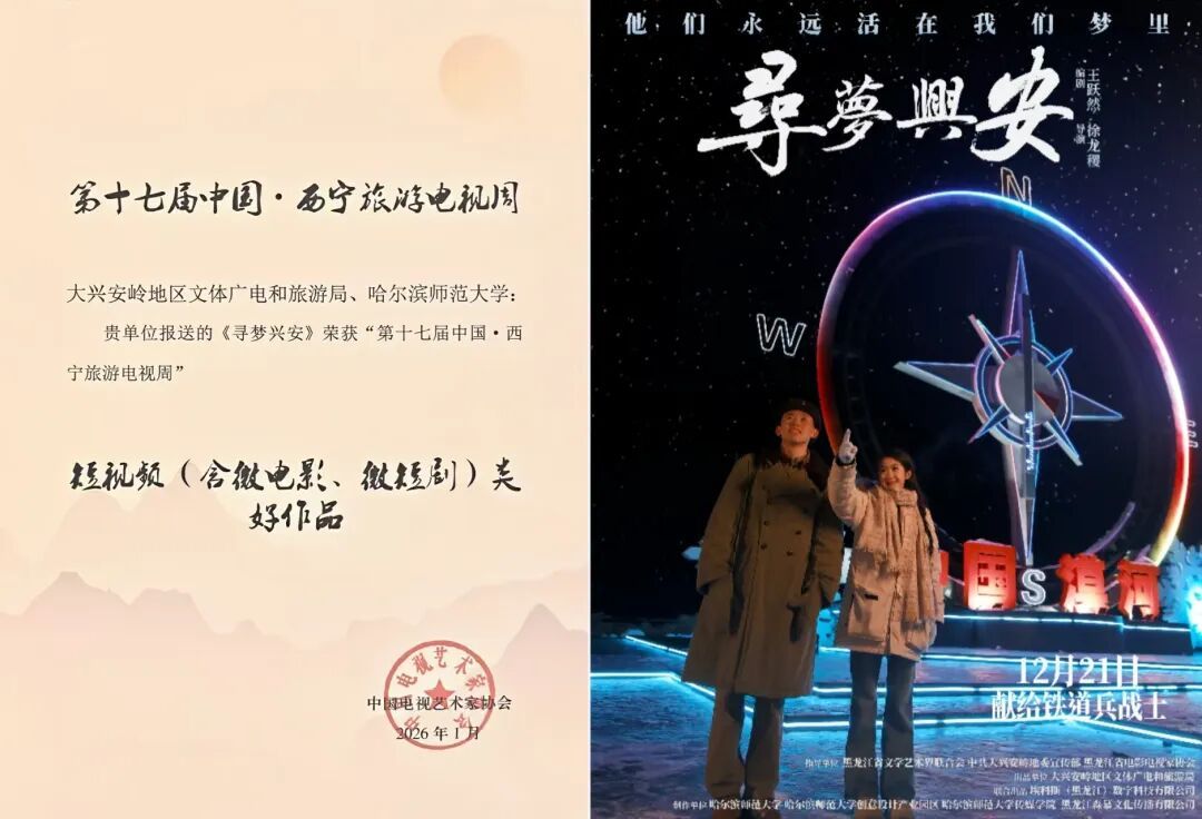 1月18日,由中国电视艺术家协会、西宁市人民政府主办,中国文联电视艺术中心、西宁市文化旅游广电局承办,中国视协文化旅游电视专业委员会、青海省电影电视艺术家协会协办的第十七届中国·西宁旅游电视周系列活动在青海省西宁市举办。由我校传媒学院副教授裴佳兴担任创意策划、副教授徐龙稷担任总导演、教师李焕达担任录音指导、教师王嘉熠担任航拍师、党委宣传部教师孙凌枫担任摄像师的作品《国强在尔滨的2024》《冰雪森林,童话伊春》《寻梦兴安》《雪与鹿缘》脱颖而出,分别荣获宣传片类“最佳作品”奖项、宣传片类“好作品”、短视频(含微电影、微短剧)类“好作品”奖项。