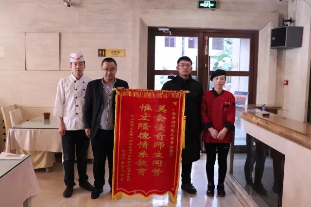 故事是这样开始的,近日梦溪教师餐厅的刘建勇经理和师傅们收到了一位患有过敏疾病的同学家长送来的锦旗:“美食佳肴师生同赞,惟宏隆德情系教育。”这两句真挚的话语,饱含着家长与学生对梦溪教师餐厅的领导与员工们的感激之情。姚同学作为一名患有过敏性疾病的大四学生,在即将离开母校之时对学校怀恋的不仅有对老师同学们的那份深情,更有对梦溪教师餐厅为他特制餐饮的师傅们的一份深深的感激。