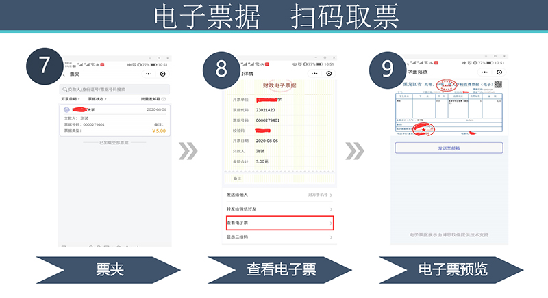 3.交费票据:我校一律开具财政电子票据,获取票据的方法如下:
