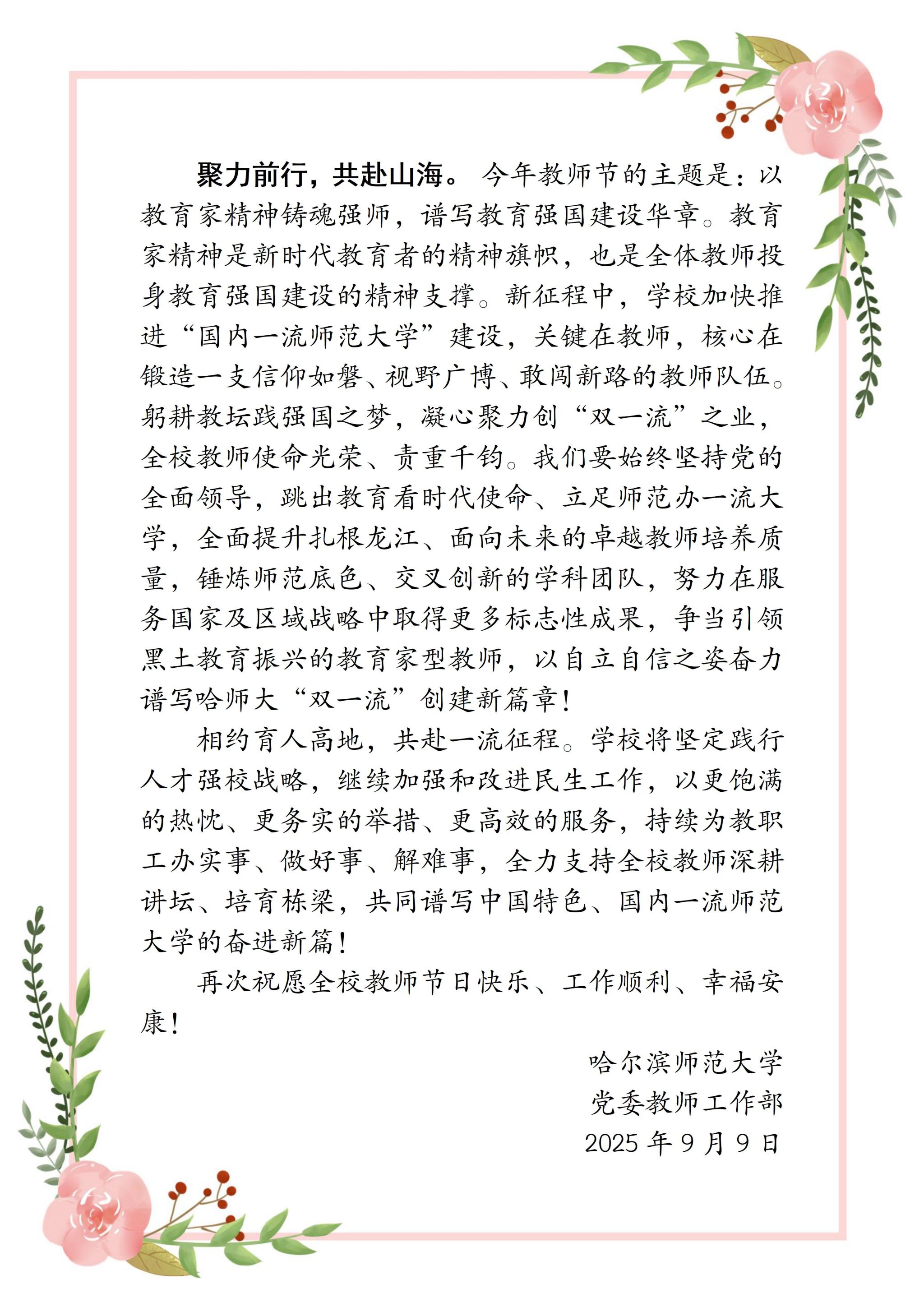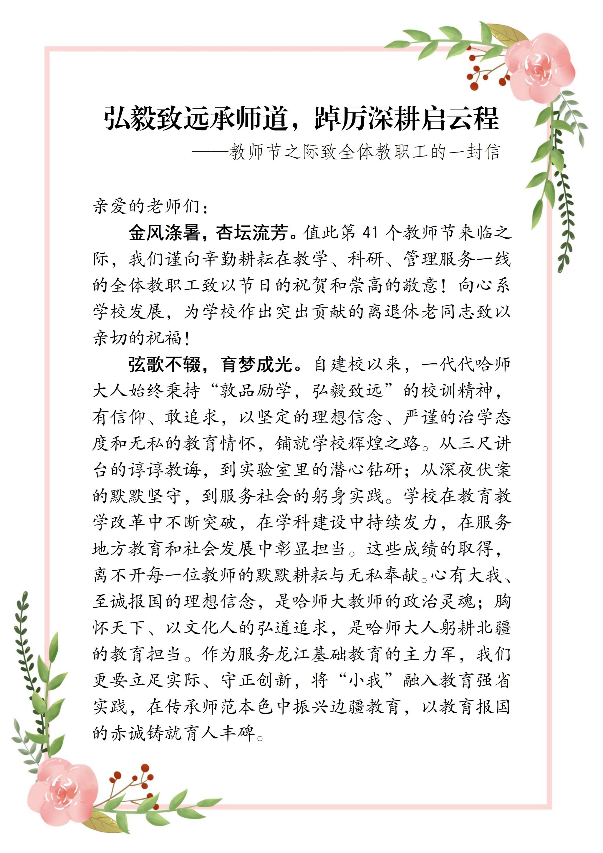 弘毅致远承师道,踔厉深耕启云程——教师节之际致全体教职工的一封信
