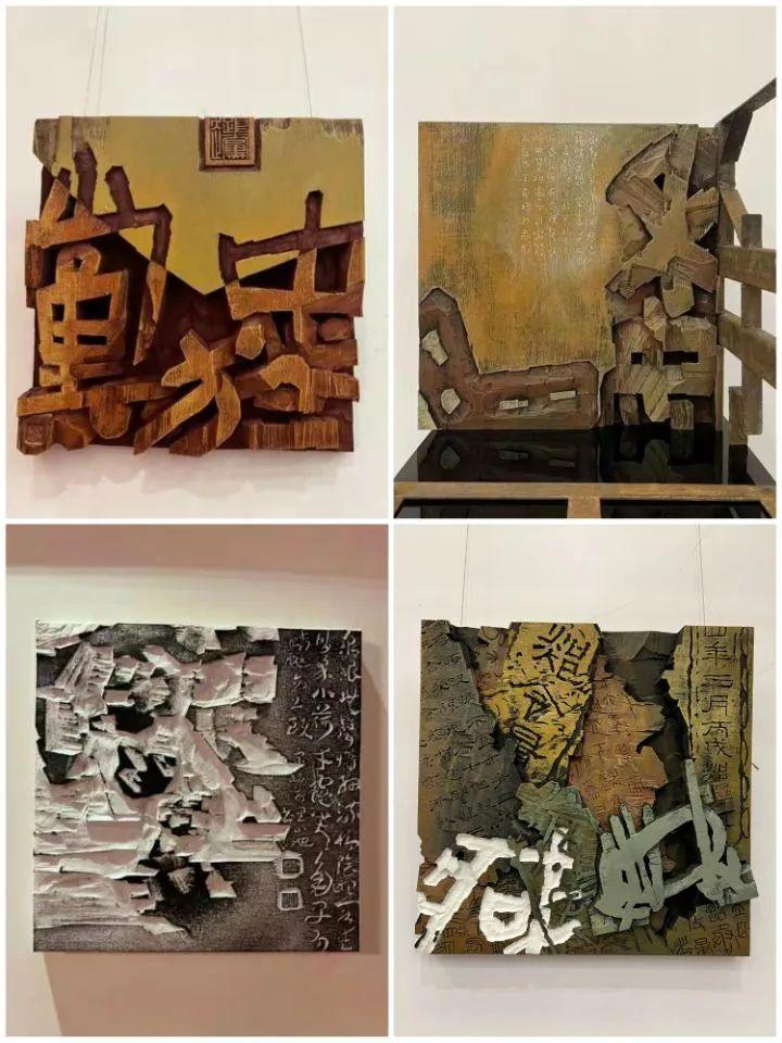 据介绍,学员们创作热情高涨,作品题材紧紧围绕时代主旋律,或是以名句格言为主题,催人奋进;或者是取材于历史故事,让人感受传统文化的魅力。在艺术样式上,学员们大胆尝试多样艺术手法和媒介材质,感受书刻艺术当下广阔的发展空间。本次展览展出的书刻作品内容丰富、形式多样,字法、刀法、章法、色彩高度统一,综合材料的应用大胆创新,作品极富视觉冲击力,很好地表达了书刻艺术继承与发展,创新与传承的辩证关系。