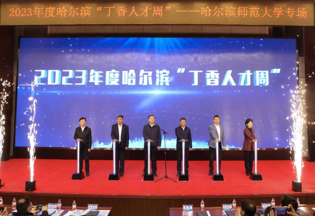 4月7日上午,由哈尔滨市人才工作领导小组办公室主办的2023年度哈尔滨“丁香人才周”启动仪式暨哈尔滨师范大学专场活动在哈尔滨师范大学科学会堂举行。