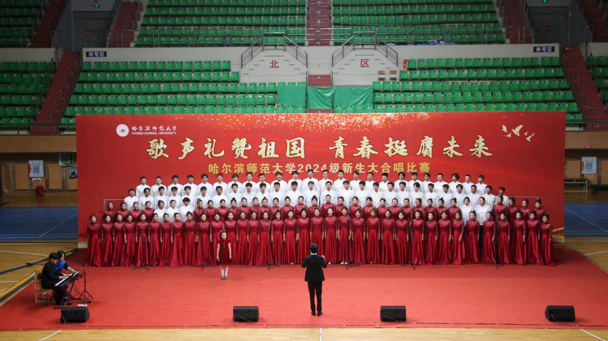 为深入学习宣传贯彻党的二十大精神,贯彻落实习近平总书记关于青年工作的重要思想,切实深化集体主义、爱国主义、社会主义教育,引领广大青年学生不断增强做中国人的志气、骨气、底气,以昂扬向上的精神风貌献礼中华人民共和国75周年华诞,奋力书写为中国式现代化挺膺担当的青春篇章,我校学生工作部(学生处、武装部)、团委在军训期间联合举办了“歌声礼赞祖国 青春挺膺未来”庆祝中华人民共和国成立75周年2024级新生大合唱比赛。9月19日,合唱比赛在江北校区体育馆和江南校区体育场举行,比赛现场歌声嘹亮,气势澎湃,精彩纷呈,20支参赛队伍用铿锵激昂的歌声,展现了哈师大学子锐意进取、昂扬向上的精神面貌。