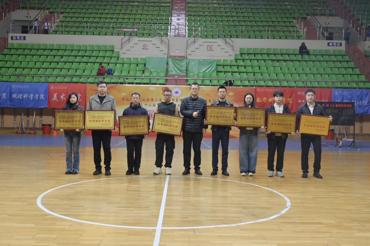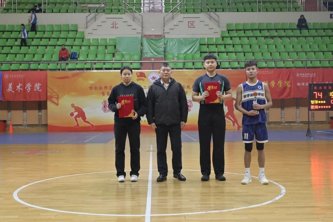 颁奖仪式上,郭砾为本届FMVP球员和冠军队伍美术学院颁奖。张艳君为亚军队伍数学科学学院颁奖。学生工作部(学生处、武装部)部(处)长王彦庆为季军队伍地理科学学院颁奖。学生就业指导处处长王阿诺为优秀组织单位颁奖。校团委书记刘春玲为最佳人气球队西语学院和最佳贡献奖体育科学学院颁奖。体育科学学院党委书记韩大伟为精神文明奖获奖单位颁奖。学生工作部(学生处、武装部)副部(处)长钱正龙为2025校园篮球联赛MVP和裁判员代表颁奖。体育科学学院党委副书记、正处级辅导员冯铁南为三分投篮大赛冠军颁奖。