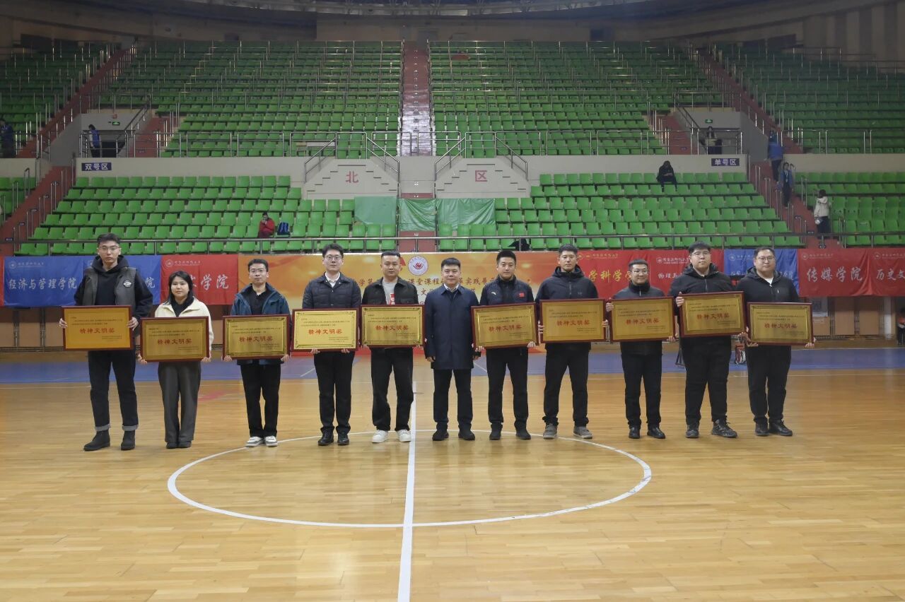 学生工作部(学生处、武装部)副部(处)长钱正龙为2025校园篮球联赛MVP和裁判员代表颁奖
