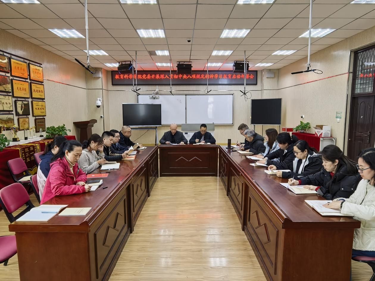 为深入学习贯彻习近平总书记关于加强党的作风建设的重要论述,落实党中央关于在全党开展深入贯彻中央八项规定精神学习教育的决定,教育科学学院于3月26日下午在社科楼213室召开深入贯彻中央八项规定精神学习教育启动部署会。学院党委书记刘兆华主持会议并讲话,学院领导班子成员、党委委员、全体党支部书记参加会议。会议上,刘兆华带领与会人员认真学习《习近平关于加强党的作风建设论述摘编》,传达省委常委会会议暨省委党的建设工作领导小组会议精神,学习学校党委《关于在全校开展深入贯彻中央八项规定精神学...